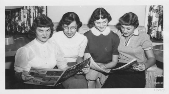 This picture shows the two females and their curious and bewildered expressions as they grab the book and try to understand it. Security showed them taking forty two minutes before they turned the book up the right way. The shocking thing to note, is that the woman on the right clearly thinks the situation is amusing. They were jailed for three years each, after they were found in the homes of other women, telling them what they had seen in the book. Had the book been about babies or cookery, the sentence would have been less. But the book was about money, and investments. One of the women later went to the bank for advice (I ask you!) on an account for her family savings, thus shaming herself and her husband in the process. Her husband has cut all ties with her, branding her hysterical and unbalanced. The library is now locked at all times, except for the entry of gentlemen with special members keys. A gun sentry has been set up in the event of more women trying to gain unlawful access to the library.